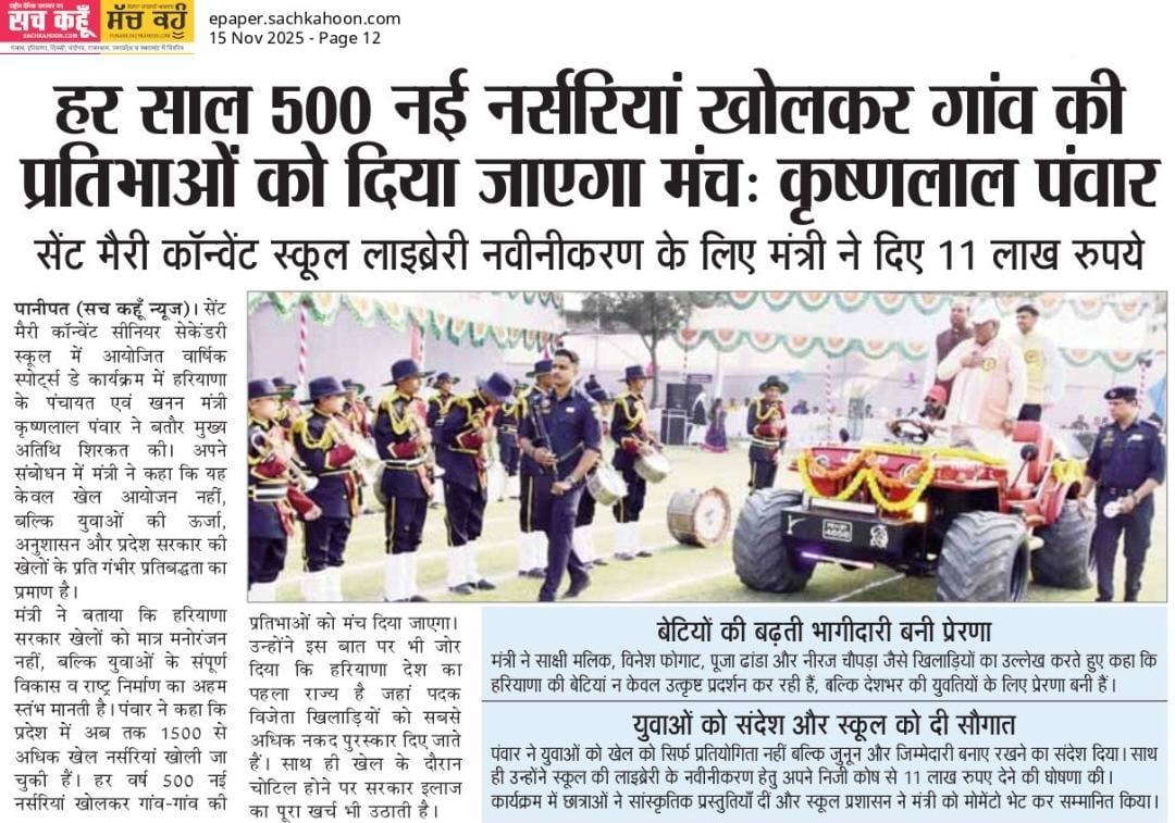 On November 9, 2023, St. Mary's Convent Senior Sec...